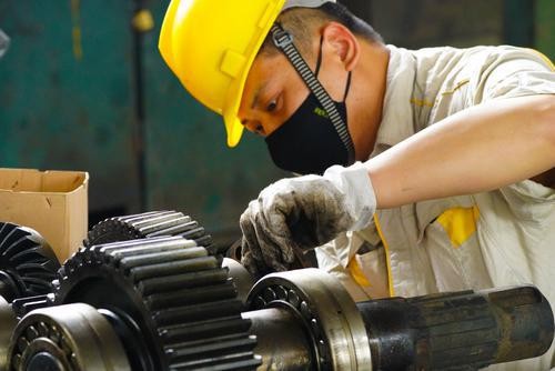 中煤新集公司機(jī)修廠工作人員精修設(shè)備,確保電煤供應(yīng)。