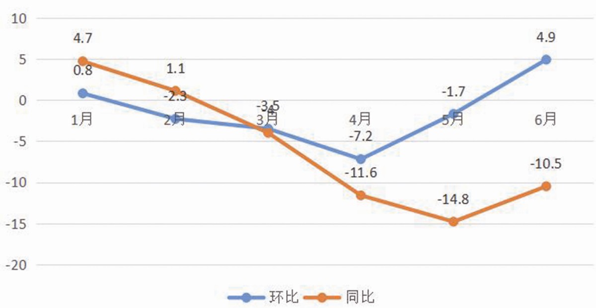 下游方面,原材料工業(yè)出廠價格環(huán)比由降轉(zhuǎn)漲,同比降幅收窄:6月份,原材料工業(yè)出廠價格環(huán)比上漲0.7%,同比下降8.5%,上半年同比下降5.9%。其中,石油、煤炭及其他燃料加工業(yè)價格環(huán)比上漲1.7%,同比下降21.6%,上半年同比下降12.3%;化學原料和化學制品制造業(yè)價格環(huán)比上漲0.4%,同比下降7.9%,上半年同比下降6.5%;黑色金屬冶煉和壓延加工業(yè)價格環(huán)比上漲1.9%,同比下降5.1%,上半年同比下降4.1%;有色金屬冶煉和壓延加工業(yè)價格環(huán)比上漲1.9%,同比下降2.2%,上半年同比下降2.2%;非金屬礦物制品業(yè)價格環(huán)比下降0.3%,同比下降2%,上半年同比下降0.8%。□