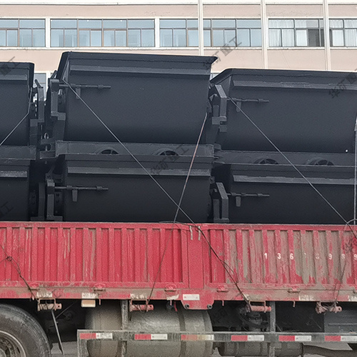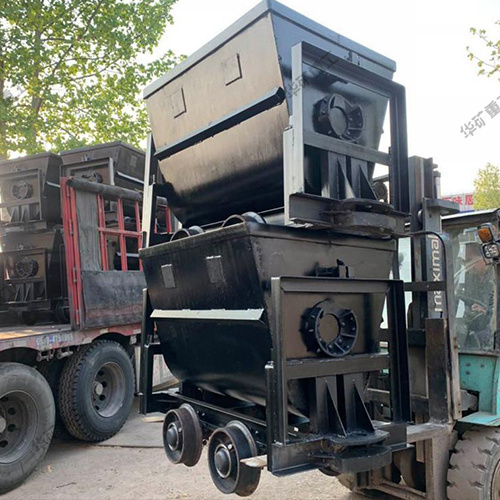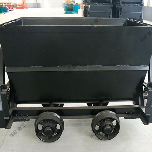 翻斗式礦車車箱斷面為V形或U形,支承在車架的翻轉軌上,車箱在翻轉軌上翻轉卸載。翻斗式礦車用在礦山或建筑工地上,用來運輸碎的塊狀物料。如:礦石、煤炭、石頭等。由車箱、車架、緩沖碰頭、輪軸等組成。結構簡單,堅固耐用、使用方便、只需人力打開止動板就能很容易地卸下物料。輪軸采用了滾柱軸承,有效地減少了運行阻力,用人力即可推動。