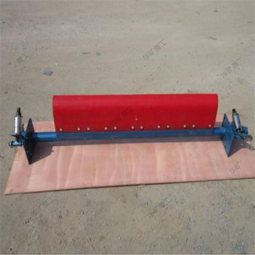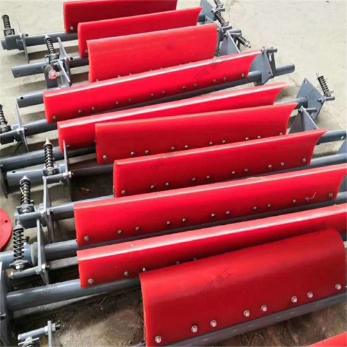 清掃器,刮板借彈簧壓力緊貼輸送帶的載荷面清掃卸載后粘結在輸送帶上的煤粉。清掃器在輸送機上有著不可忽視的作用。在運行中,如果人為的清除機尾滾筒附著物,往往容易發(fā)生嚴重人身傷亡事故。而清掃器有及時、方便地、快速的清除滾筒附著物的特點。