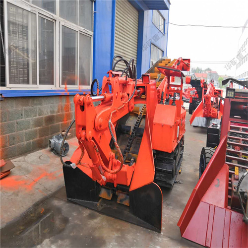 礦用挖掘式裝載機(jī)又稱扒渣機(jī),坑道清理機(jī),坑道出渣機(jī)。按照行走方式分為輪式和履帶式。集液壓行走,挖掘裝置,皮帶輸送,裝車,清理巷道底部五種功能于一身。主要由電動機(jī),液壓行走,挖掘裝置,行走裝置,皮帶輸送卸料和電器控制系統(tǒng)等部分組成。整車液壓系統(tǒng)由一臺15kw電動機(jī)為動力帶動齒輪泵,液壓油經(jīng)油箱到多路閥到執(zhí)行動作元件再回到油箱,通過多路閥的四個手柄完成對液壓裝置的控制。它突出的優(yōu)點(diǎn)就是操作靈活,出渣效率高,以:2m*2m巷道為例,一排炮在一小時左右就可以清理干凈。