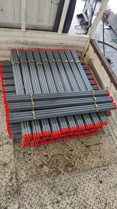 鉆桿用于錨桿鉆機上,分為底節(jié)錨桿,中節(jié)錨鉆桿,下節(jié)錨鉆桿,鉆桿之間可以用連接套連接。配用的是錨桿鉆頭。 錨桿鉆桿與鉆頭連接出螺紋為內(nèi)M14×1.5或方牙,長度0.4~2.8米,具體長度及連接方式應(yīng)在合同注明。錨索鉆桿長度為1米/根,用戶需其他規(guī)格可定制。