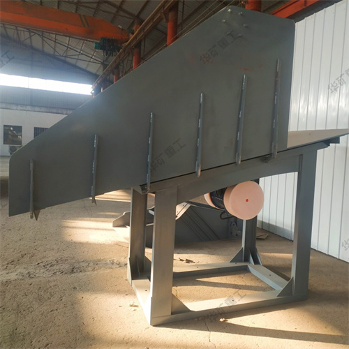 振動放礦機(jī)是以振動電機(jī)為動力源,利用安裝在振動電機(jī)主軸兩端的偏心塊在旋轉(zhuǎn)運動中所產(chǎn)生的離心力來得到激振力,驅(qū)使振動放礦機(jī)臺面和物料做周期直線往復(fù)振動,當(dāng)放礦機(jī)體振動的加速度垂直大于重力加速度時,機(jī)體中的物料被拋起,并按照拋物線的軌跡向前跳躍運動,拋起和下落在瞬間完成,由于振動電機(jī)的連續(xù)振動,放礦機(jī)體也連續(xù)振動,機(jī)體中的物料連續(xù)向前跳躍,這樣就達(dá)到放礦和輸送礦石的目的。