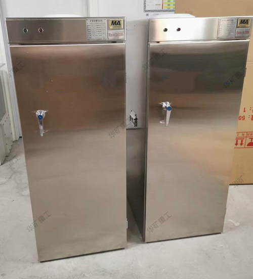 礦用防爆飲水機(jī)為礦用隔爆兼本安型,防爆標(biāo)志為Exd[ib]I。使用在有甲烷氣體混合物和煤塵爆炸危險的煤礦井下。可同時提供85℃的熱水和常溫水,可供井下工作人員飲用熱水。本加熱器能自動控溫,采用內(nèi)置不銹鋼電加熱管加熱,具有壽命長熱效高,升溫快,噪聲低,具有安全隔爆,省電等特點。