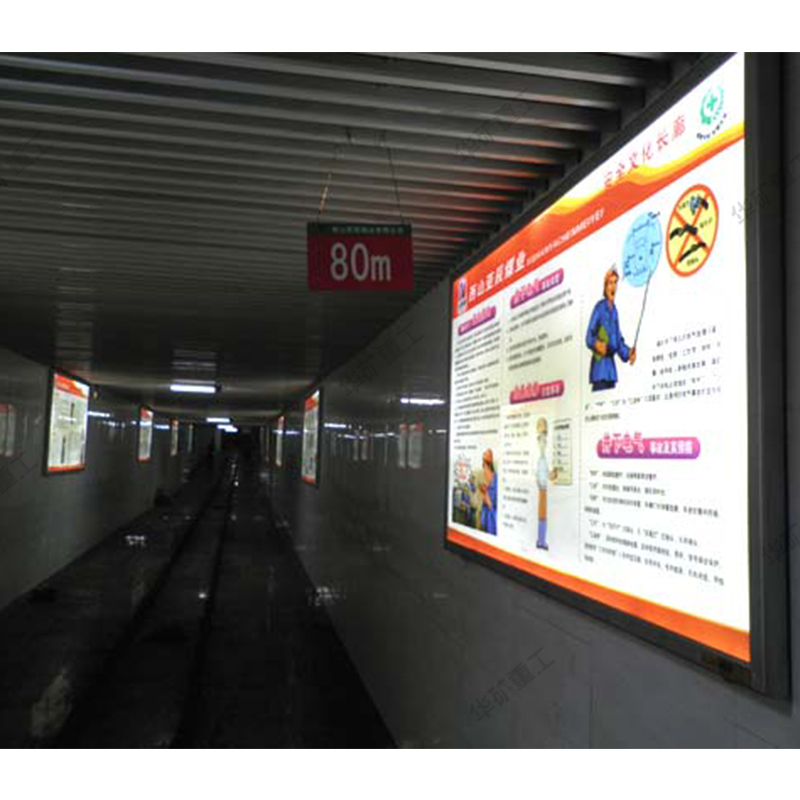 礦用本安型LED宣傳燈箱用于煤礦企業(yè)在煤礦井下巷道中宣傳企業(yè)文化、企業(yè)理念、安全生產(chǎn)、警示標語等。礦用LED宣傳燈箱的設立,不僅宣傳企業(yè)的文化,提高企業(yè)的形象,讓廣大礦工同志時刻感受企業(yè)文化氛圍,時刻牢記安全生產(chǎn)警言,同時對煤礦井下的環(huán)境起到了改善,增添了亮度,也能更好的達到煤礦標準化的建設。