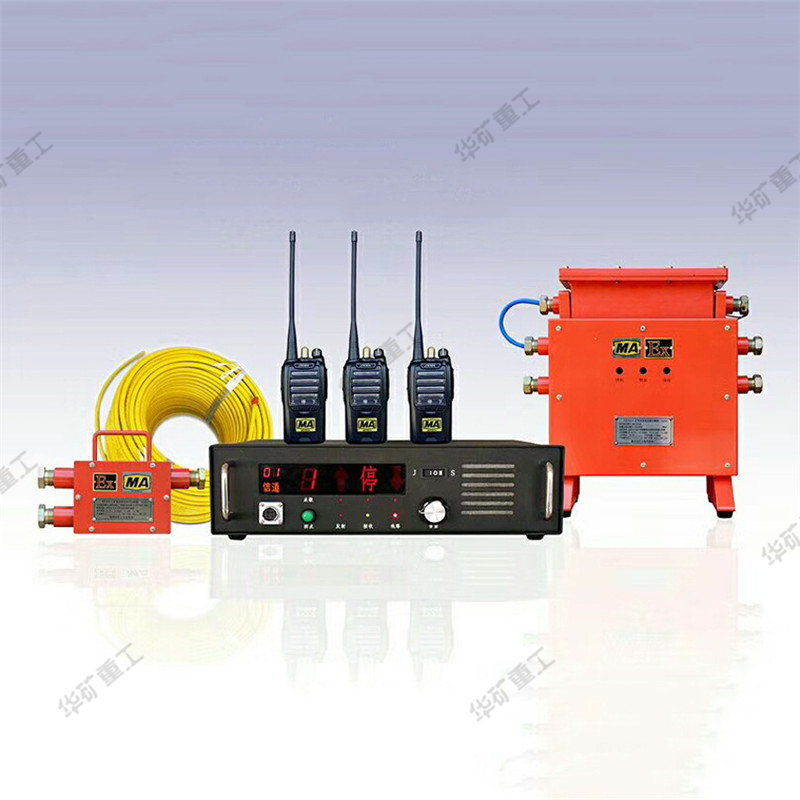 本系統(tǒng)是用在井下聯(lián)絡(luò)、指揮巷道中機(jī)車運(yùn)行的通訊設(shè)備組合,它可以出色地傳送語音信號。安裝了這套設(shè)備,機(jī)車調(diào)度站的人員可以隨時(shí)靈活、迅速地對機(jī)車進(jìn)行調(diào)度指揮;機(jī)車司機(jī)也可以將機(jī)車的狀態(tài)以及所處的位置等有關(guān)情況向調(diào)度站及時(shí)反饋;從而保障了機(jī)車穩(wěn)妥、安全、運(yùn)行。為該系統(tǒng)配套的組件均為礦用本質(zhì)安全型的設(shè)備,允許在具有煤塵、爆炸性氣體的(礦井巷道)環(huán)境中使用。系統(tǒng)由基地站(包括基地臺、匯接機(jī)、穩(wěn)壓電源、防爆手機(jī)),信號傳輸電纜(包括泄漏電纜、雙向中繼放大器)以及手持機(jī)三部分組成。基地站到移動電臺的通話距離:單線15Km;帶有分支的總距離可達(dá)到25km。地站的全部設(shè)備都可以放在礦井下調(diào)度室的桌面上,使用127V50Hz交流照明電就可以工作。