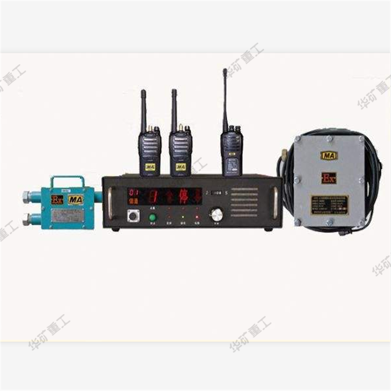 本系統(tǒng)實(shí)現(xiàn)井上機(jī)房人員和斜井機(jī)車或豎井吊罐中維修人員相互通話的通訊設(shè)備。它可以有效地傳遞語音及打點(diǎn)信號,使井上有關(guān)人員和斜井及豎井內(nèi)人員建立起緊密的聯(lián)系。系統(tǒng)由設(shè)在機(jī)房內(nèi)的基地臺、穩(wěn)壓電源,鋪設(shè)在井道中泄漏電纜以及人身攜帶的手持機(jī)所組成。基地臺收到的語音、打點(diǎn)信號由機(jī)外的話筒喇叭發(fā)出,在85dB的噪音環(huán)境中仍能與手持機(jī)進(jìn)行通話或打點(diǎn)聯(lián)系。(基地臺具有記憶并顯示打點(diǎn)次數(shù)的功能)。該系統(tǒng)配套的設(shè)備均可以在具有煤塵、爆炸性氣體的礦井中使用。安裝了這套設(shè)備,能夠保障斜井人員及豎井檢修人員安全、可靠地工作。基地臺、穩(wěn)壓電源安放在機(jī)房的桌面上,使用127V交流照明電。
