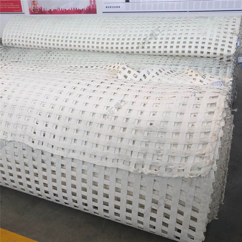 煤礦井下用聚酯滌綸纖維增強(qiáng)塑料網(wǎng)假頂是一種新型樹脂纖維聚合網(wǎng)材,是用高模、高強(qiáng)度滌綸長絲捆綁編織成基體,在該基體的表面涂覆一層可阻燃導(dǎo)靜電的涂層,用以代替金屬網(wǎng)、塑料網(wǎng)、鋼塑網(wǎng)、打包帶編網(wǎng)。在工作面停采前開始鋪設(shè),采用同步上網(wǎng)工藝整體鋪設(shè),簡化收尾工序。網(wǎng)片可根據(jù)工作面情況預(yù)制不同強(qiáng)度和規(guī)格。對提高綜采工作面回撤效率和安全保障性具有技術(shù)革新意義,尤其對工作面收尾后擱置時間較長或頂板有水等困難條件下的回撤具有顯著效果。