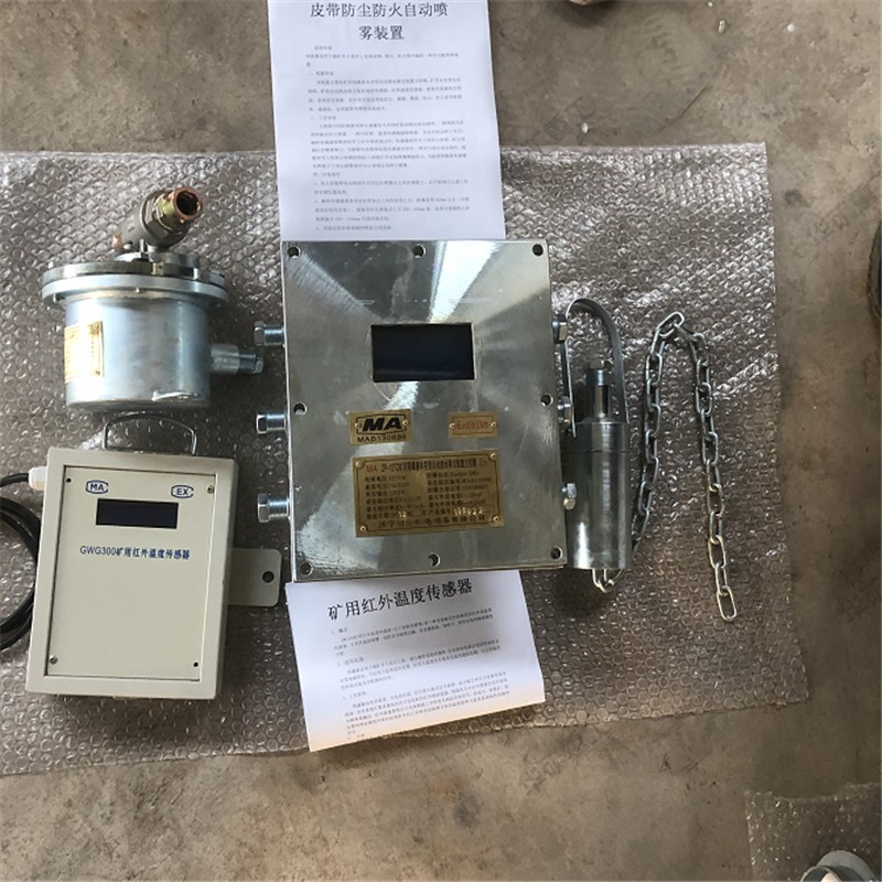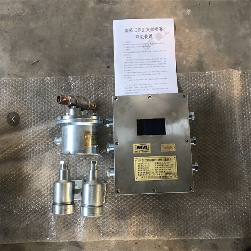 ZP-127Z礦用隔爆兼本安型自動灑水降塵裝置主控箱、GUR8礦用本質(zhì)安全型熱釋紅外傳感器、DFH-20/7型礦用本安型電動球閥以及管路噴嘴等。