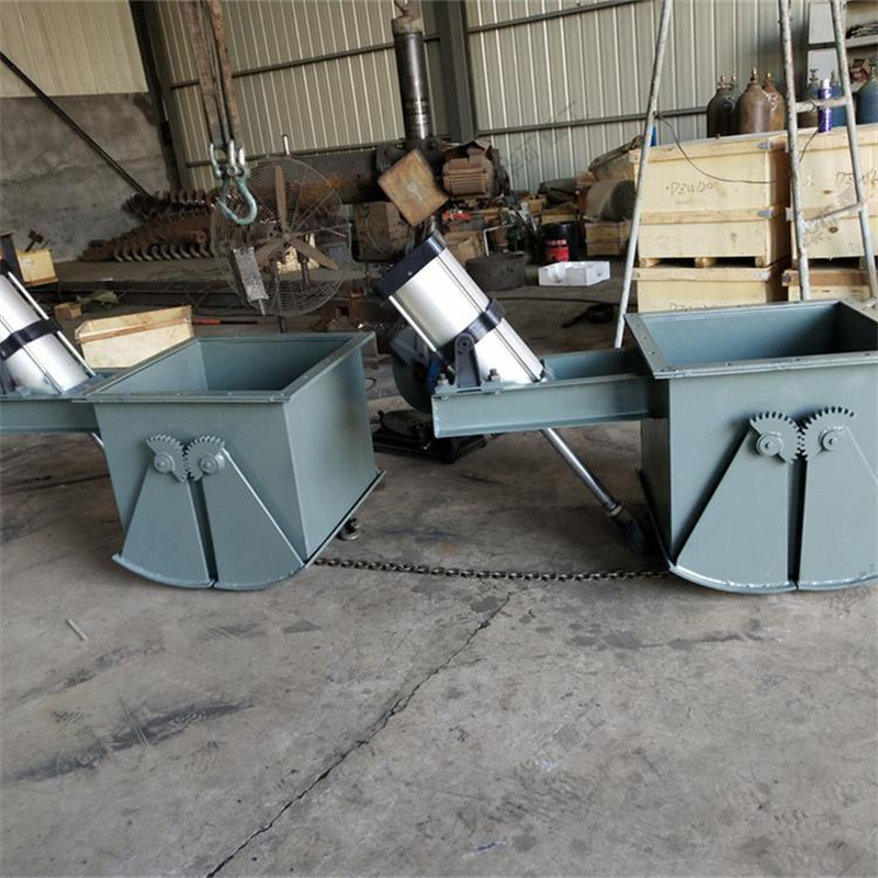 電液動扇形閘門采用電液推桿作為驅(qū)動,也可選用電動推桿或氣缸作為動力源。電液動扇形閘門工作時由電液推桿的伸縮帶動扇形閘板沿軸心旋轉(zhuǎn),使扇形閘板向一邊開啟,物料隨即下落,待接料裝置滿載后,再由電液推桿驅(qū)動使扇形閘板復位,關(guān)閉截斷下落的物料。