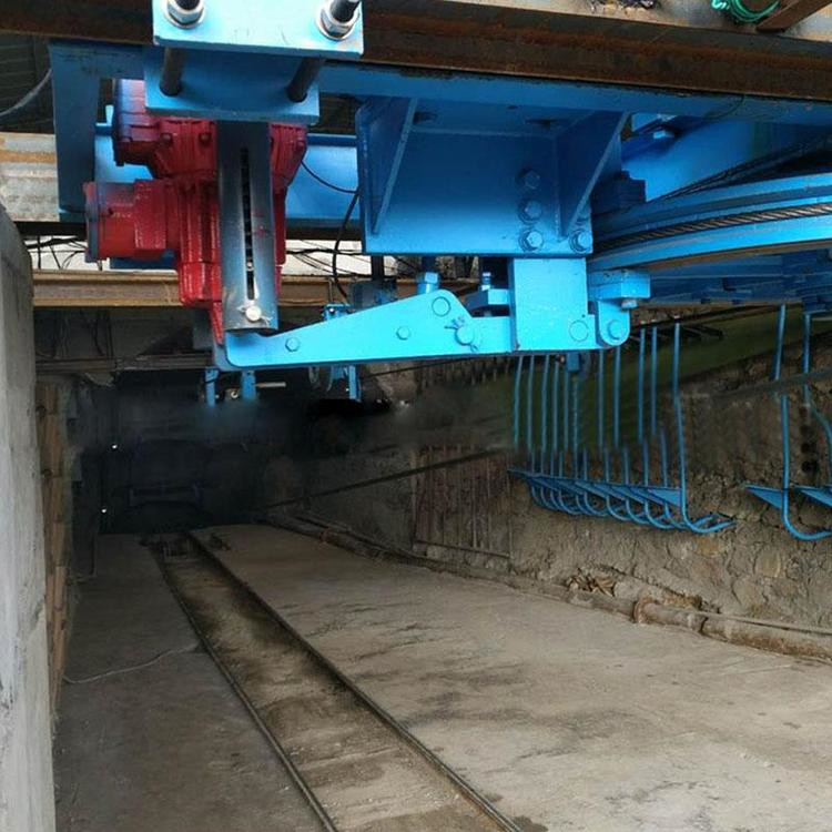 將鋼絲繩安裝在驅(qū)動(dòng)輪、托繩輪、壓繩輪、迂回輪上并經(jīng)張緊裝置拉緊后,由驅(qū)動(dòng)裝置輸出動(dòng)力帶動(dòng)驅(qū)動(dòng)輪和鋼絲繩運(yùn)行,從而實(shí)現(xiàn)輸送礦工的原理。用地下礦用架空索道來輸送礦工,其目的是縮短礦工上下井的路途時(shí)間,減輕礦工上下井的體能消耗。