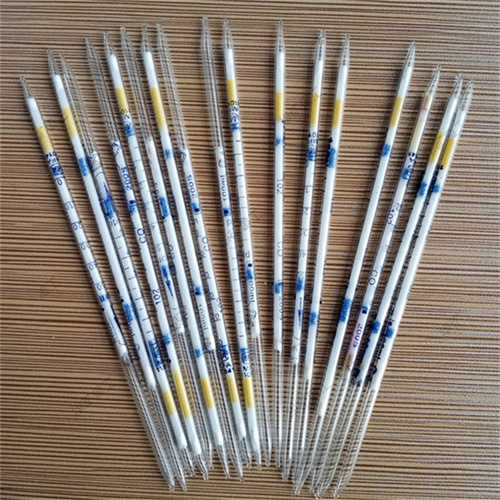 氣體檢測管外殼材質(zhì)玻璃管,內(nèi)裝一定載體和吸附劑,氣體通過時發(fā)生變色反應(yīng),由白色變成黃綠色,變色長度與二氧化氮?dú)怏w的濃度成正比,比長定量,而濃度標(biāo)尺一般都直接印在檢測管上,因此可以直接從檢測管上的標(biāo)尺讀取被測氣樣中氣體的濃度。檢測管以其快速、直觀、經(jīng)濟(jì)適用、安全可靠、操作簡單,隨時隨地都可檢測等優(yōu)點(diǎn),廣泛用于環(huán)保、化工、煤炭、石油等多領(lǐng)域。