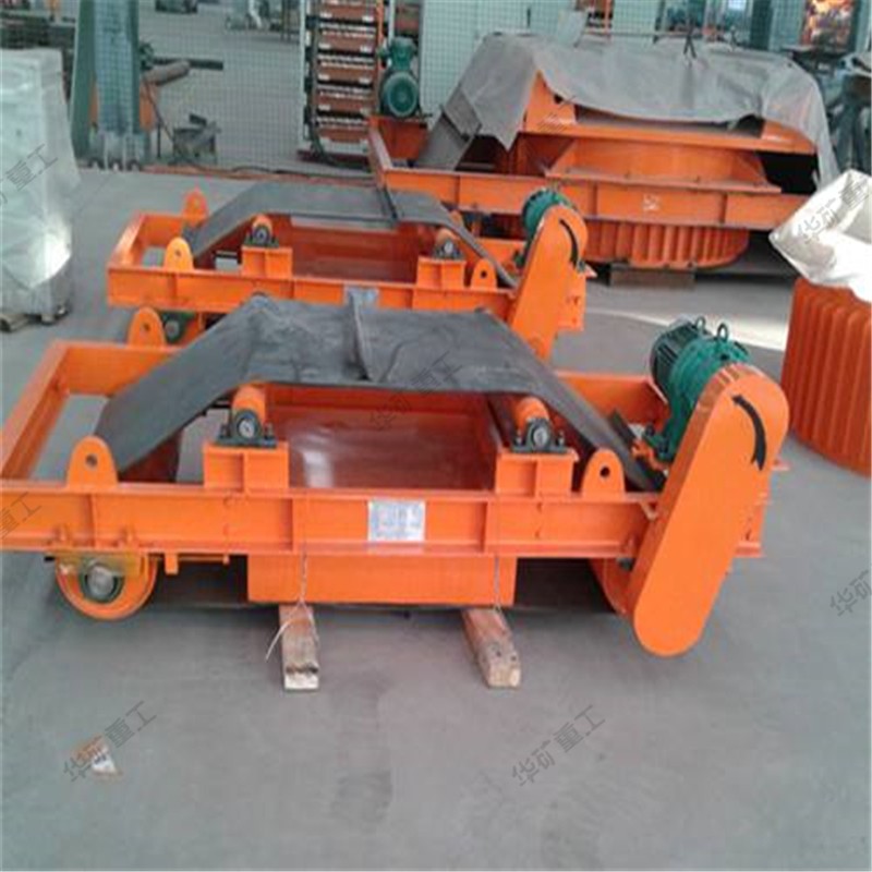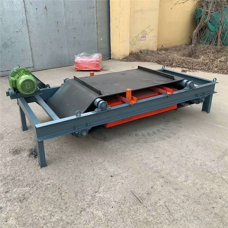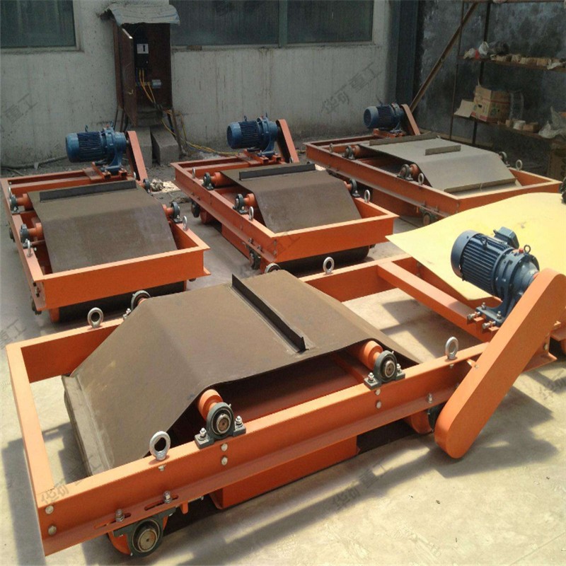 當(dāng)顆粒狀物料經(jīng)過永磁自卸除鐵器的正下方時(shí),混雜在物料中的鐵磁性雜質(zhì)大約0.1—0.36公斤被吸起,由于除鐵器上的皮帶不停的運(yùn)轉(zhuǎn),當(dāng)吸附在上面的鐵磁性物料經(jīng)過無磁區(qū)時(shí),便被皮帶上的鐵件刮出,扔進(jìn)集鐵箱,從而達(dá)到連續(xù)自動除鐵的目的。